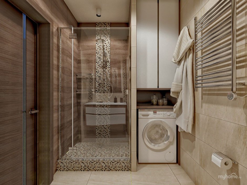 Ванная с душевой кабиной и стиральной