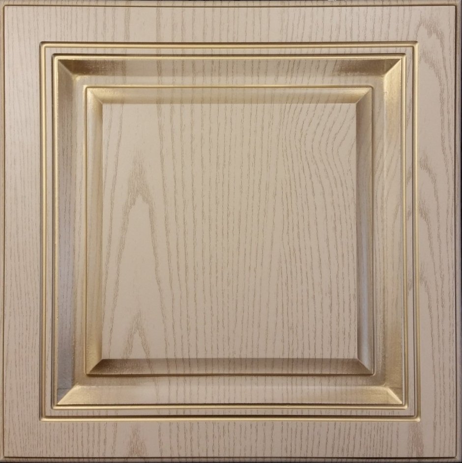 Фасад МДФ патина ясень золото 85 с фрезой Квадро