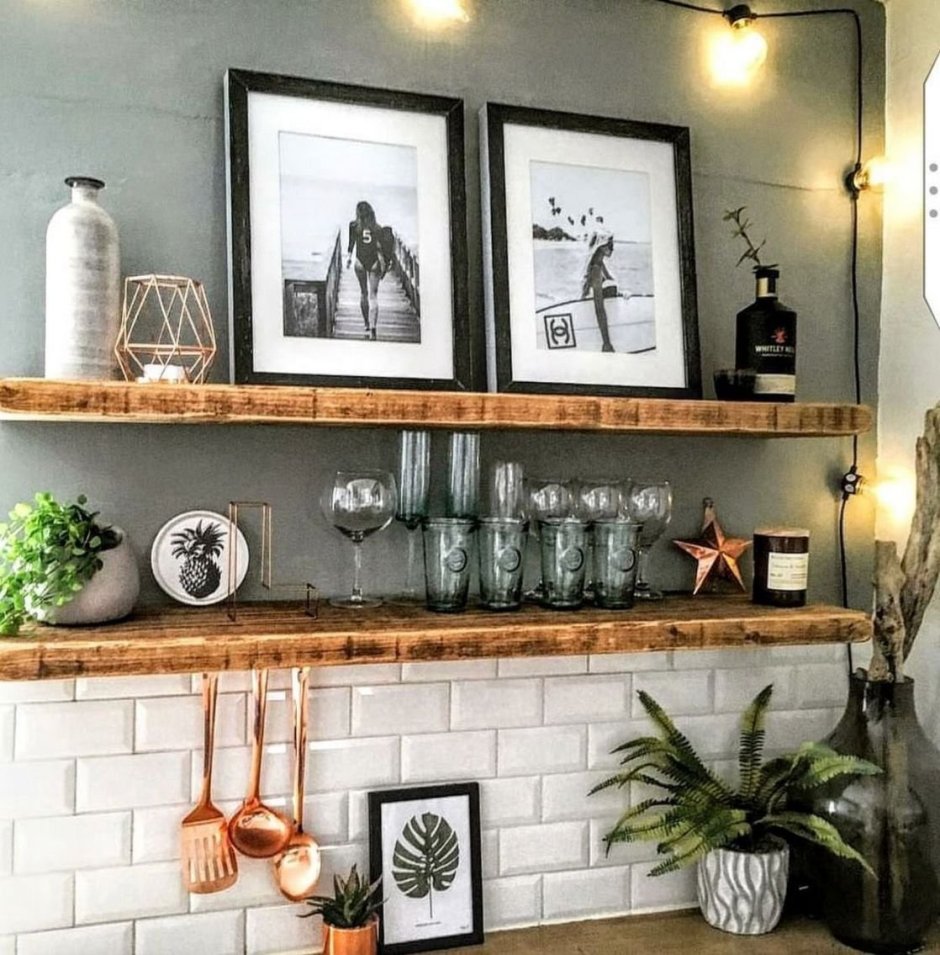 Оформление полок на кухне