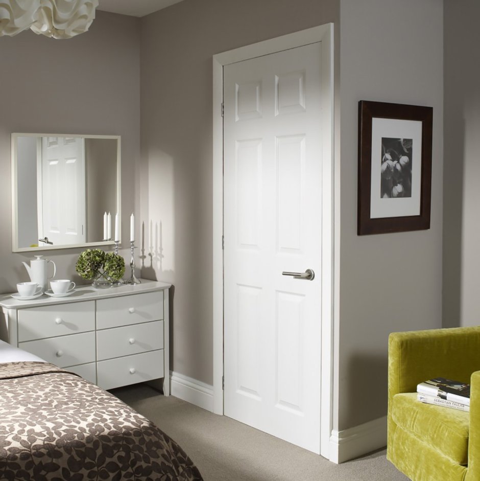 Интерьер с белыми дверями и плинтусами