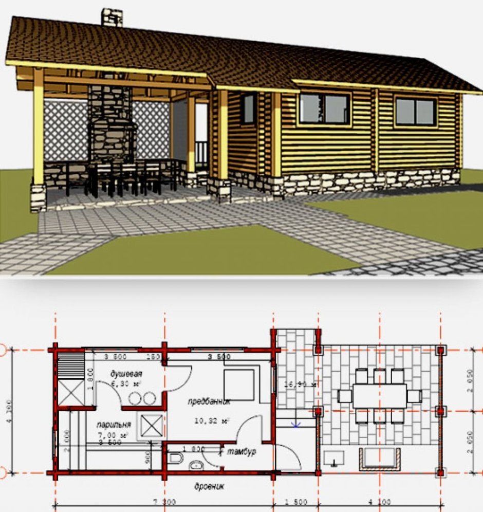 Навес является важной частью общего дизайна бани, представляющий собой своего рода крытую террасу, где можно проводить время на свежем воздухе, наслаждаться окружающей природой и отдыхать после парной. Он обеспечивает защиту от солнца, дождя и ветра, создавая комфортные условия для пребывания на открытом воздухе.