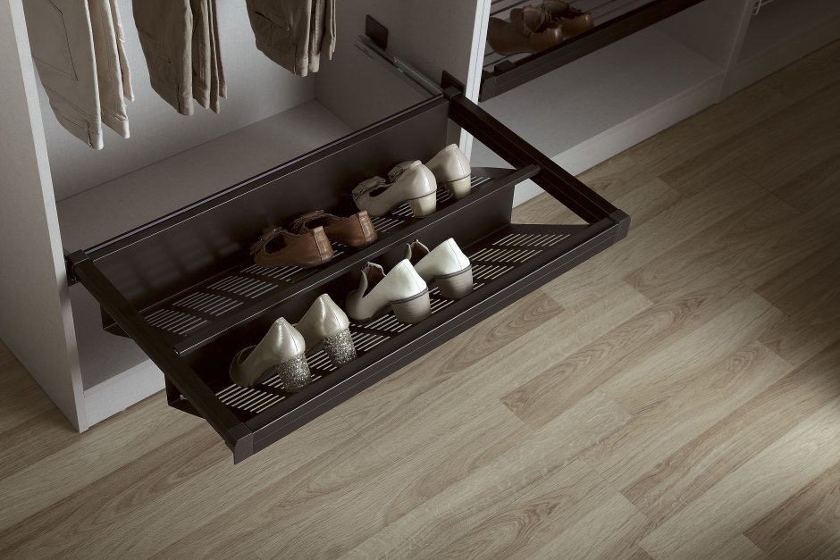 Выдвижная полка для обуви Unihopper в базу 600мм с доводчиком clip-on Moka
