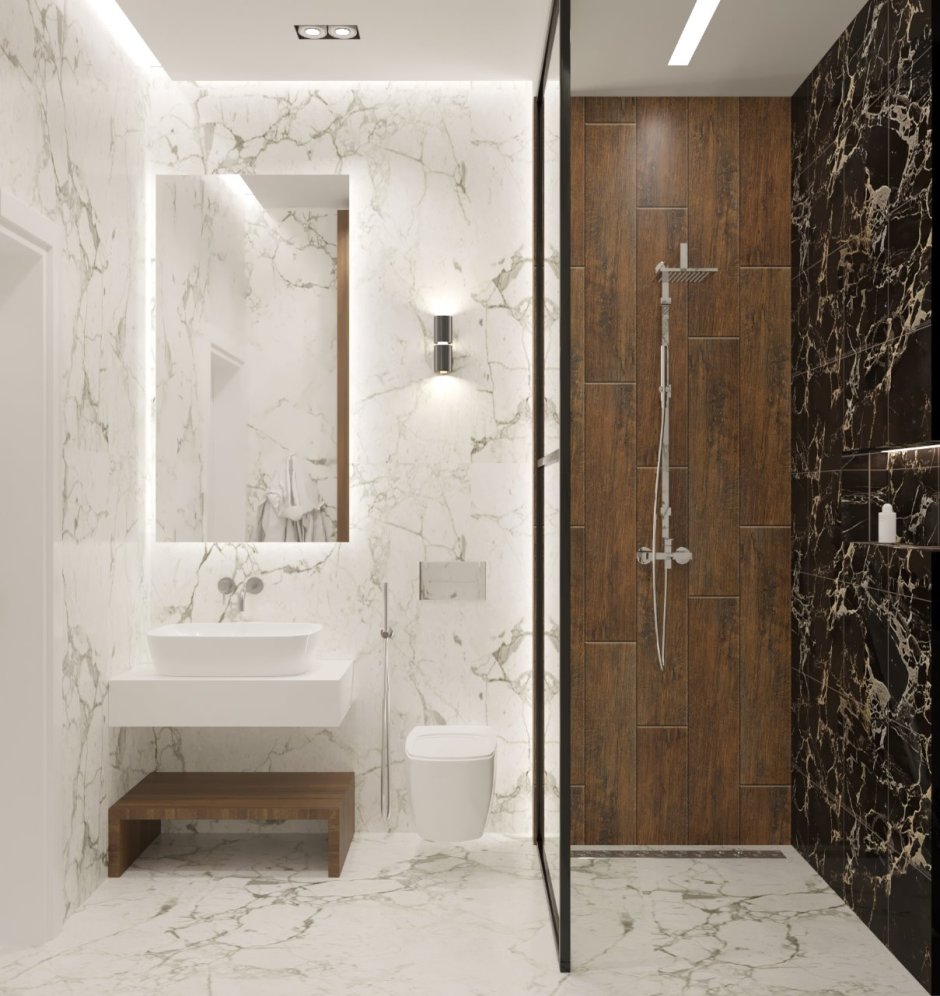 Санузел мрамор и дерево