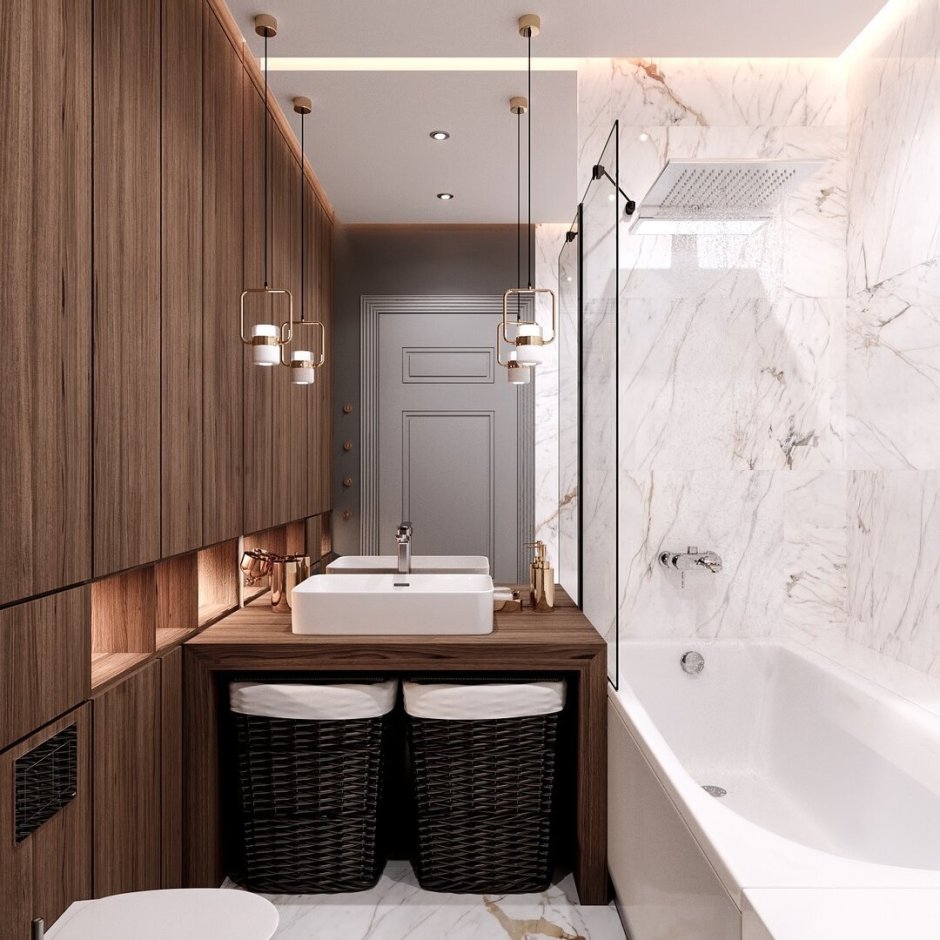 Ванная комната под дерево и мрамор