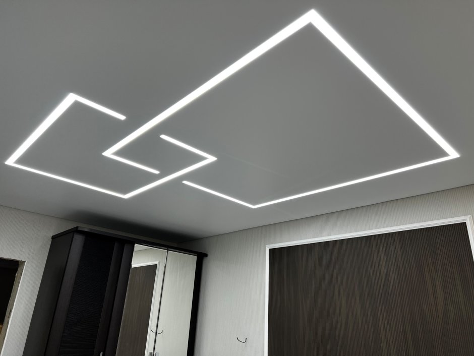 Не пропустите возможность создать впечатляющий интерьер с помощью светящихся полос на натяжном потолке. Позвольте им стать центральным элементом вашего дизайна и наслаждайтесь красотой и эстетикой, которые они приносят вашему помещению.