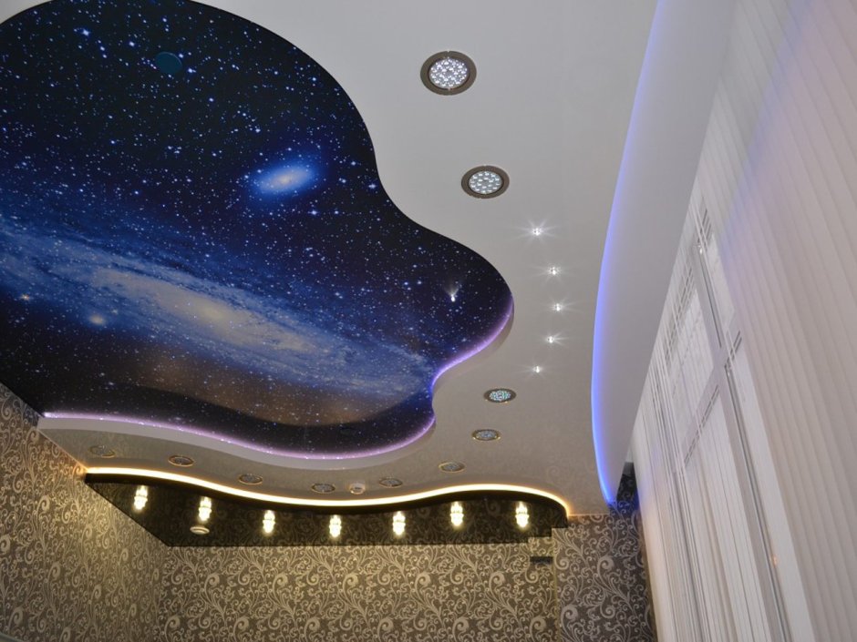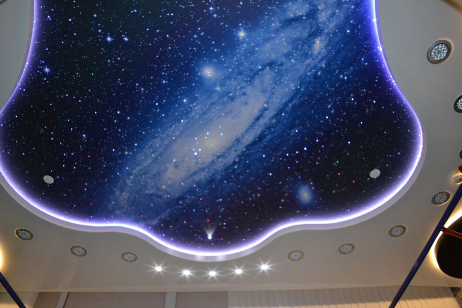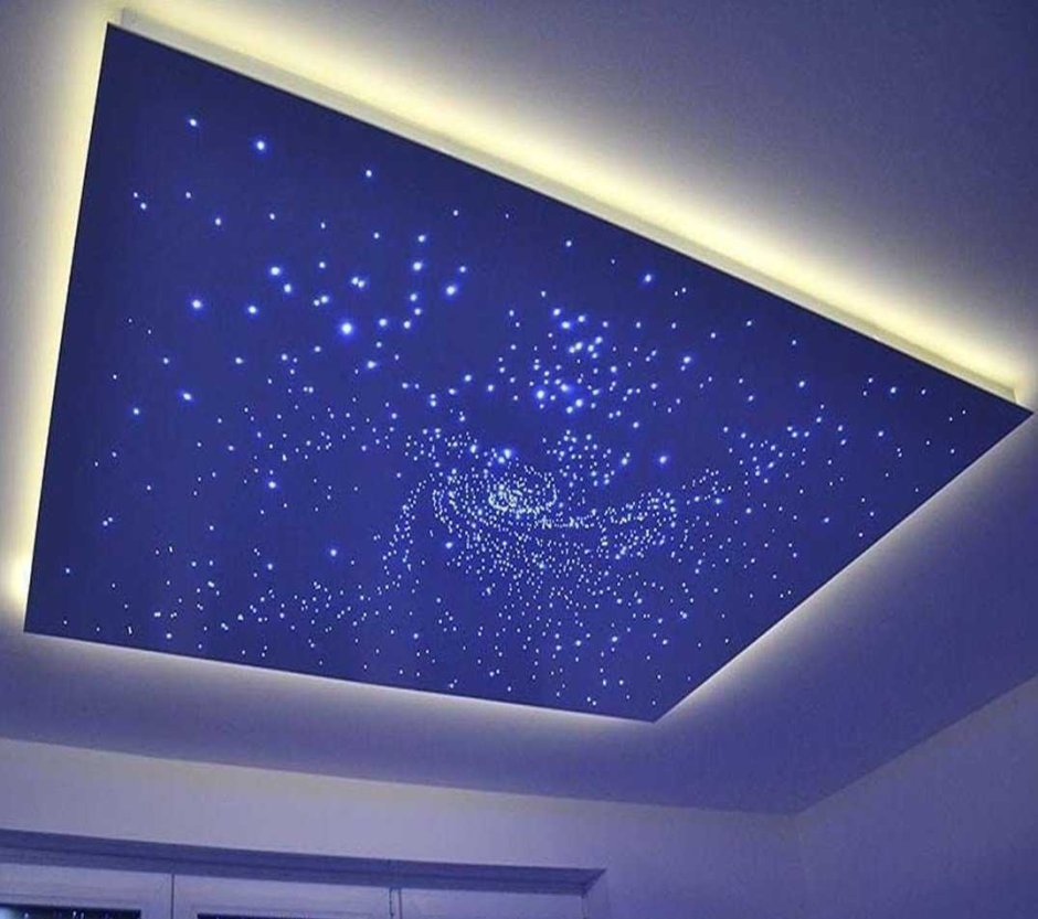 Основой для натяжного потолка является полотно из высококачественного ПВХ или ткани. Это материалы, которые не только долговечны, но и позволяют передавать свет в максимально естественной форме. Благодаря этому, звезды на потолке будут сиять ярко и реалистично, создавая впечатление настоящего ночного неба.