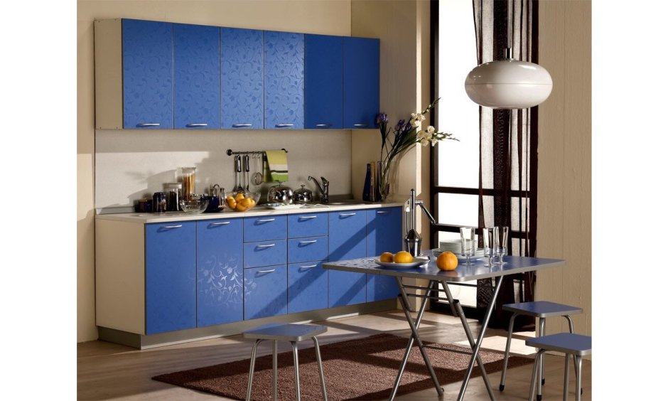 Синий кухонный гарнитур в интерьере сочетание цветов