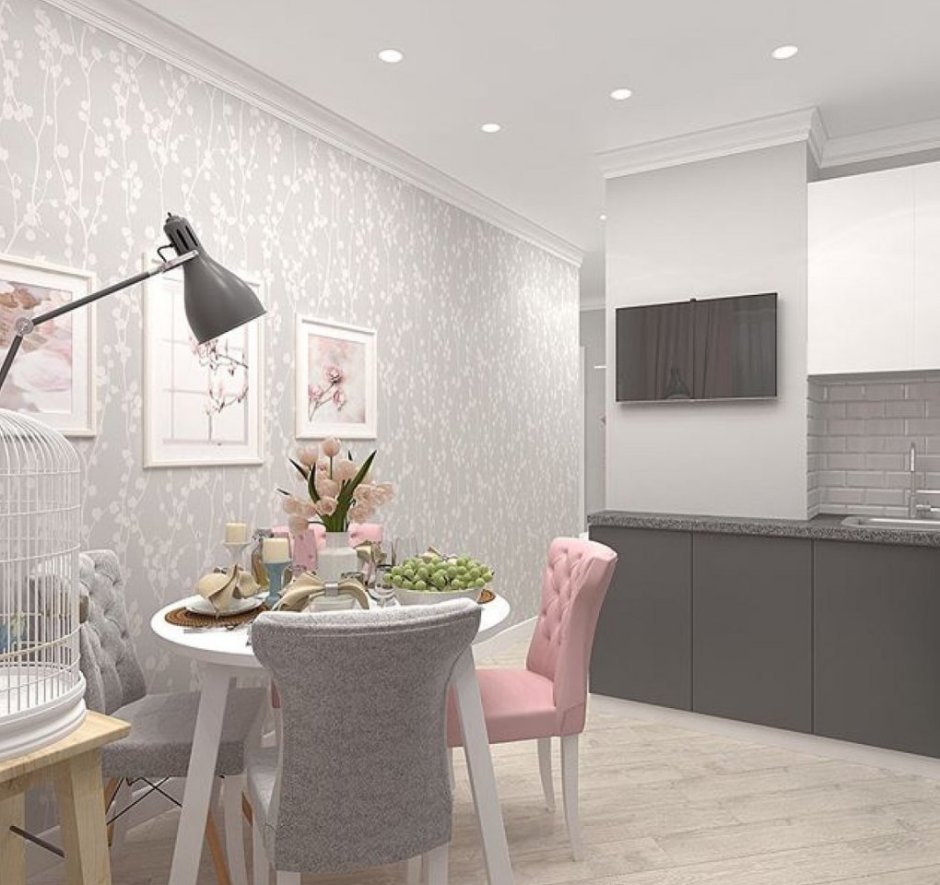 Кухня в серо-розовых тонах