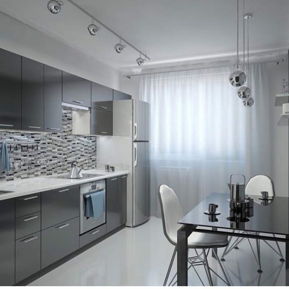 Серая кухня 9кв м интерьер штор