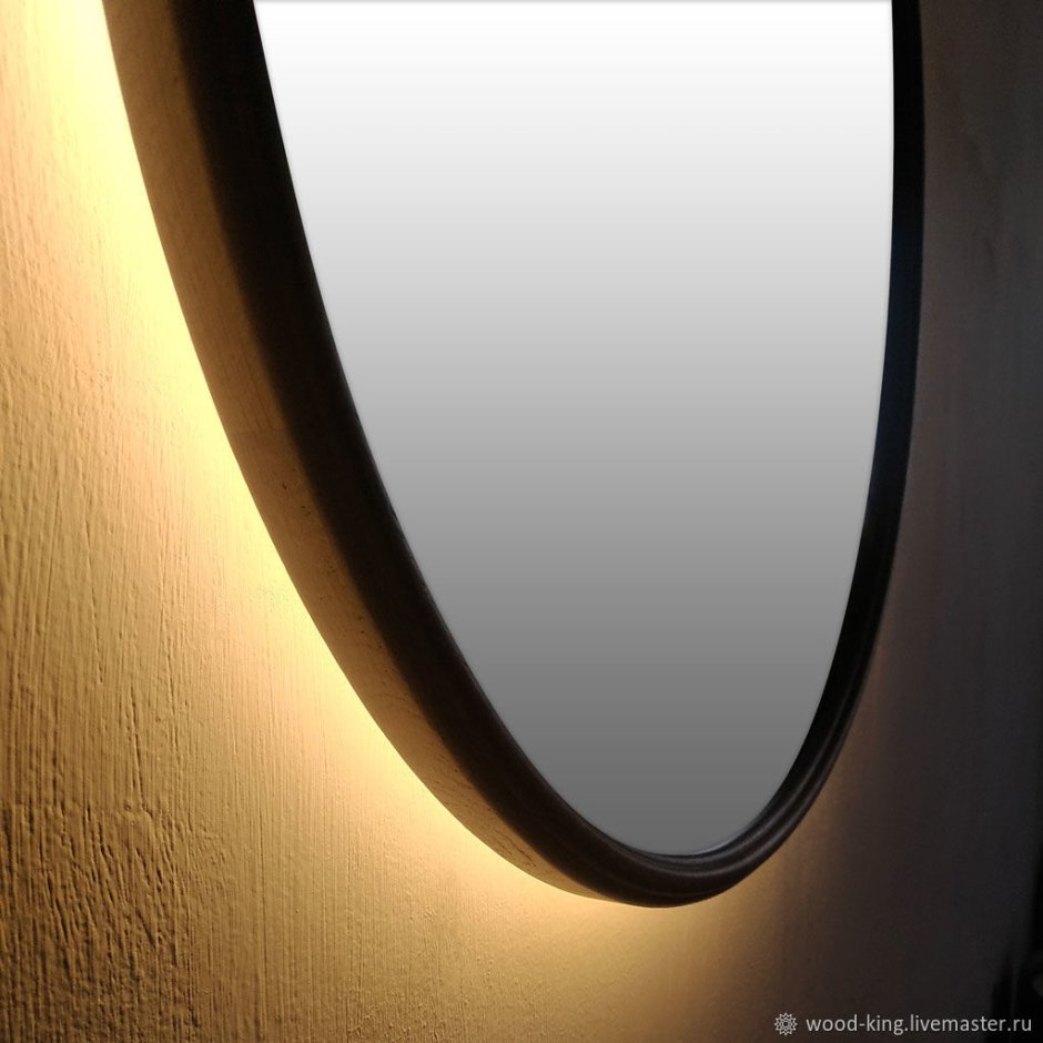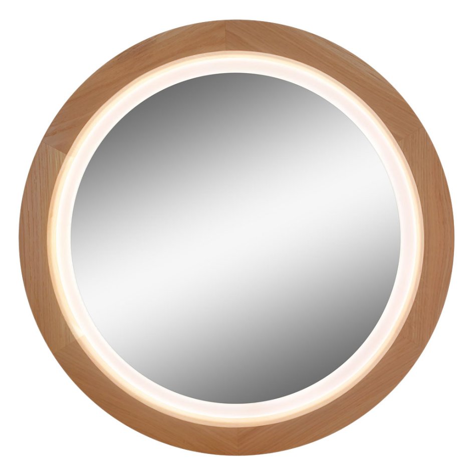 Круглое деревянное зеркало с подсветкой