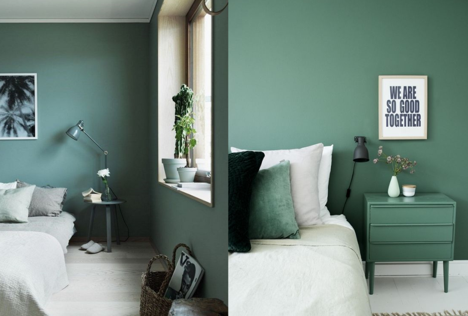 Гостиная в скандинавском стиле изумрудный цвет