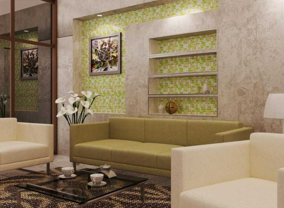 Мозаика в интерьере гостиной в современном стиле