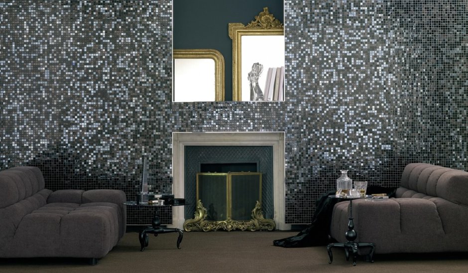 Зеркальная мозаика в интерьере гостиной