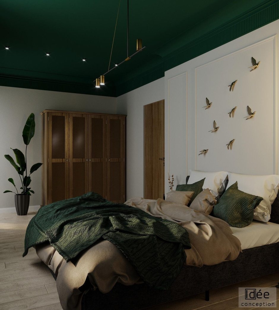 Зеленый потолок в спальне