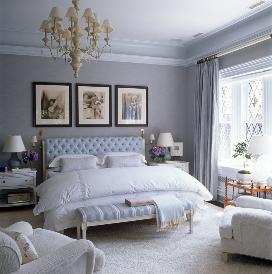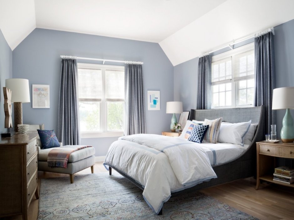 Цвет Блу грей интерьер спальни