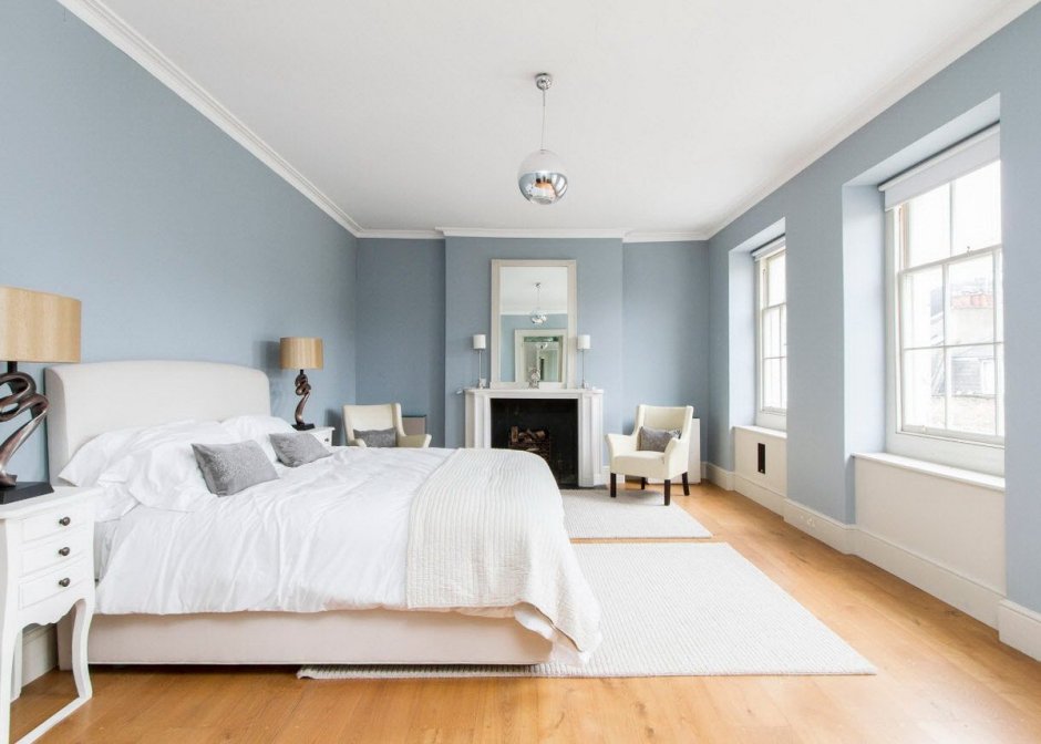 Голубые стены в спальне