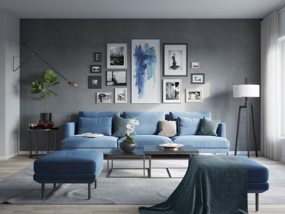 Гостиная в серо синих тонах
