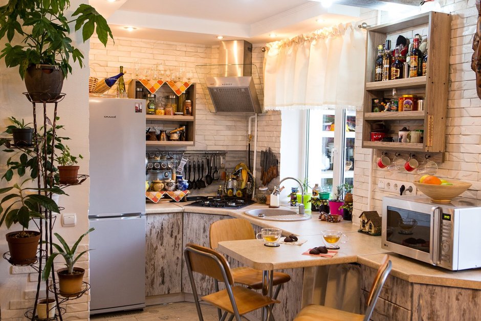 Чтобы создать уютную атмосферу в маленькой кухне, нужно добавить немного декора и акцентов. Возможно, вам понравится идея использования ярких посуды или настенных наклеек с интересными рисунками. Растения также могут стать отличным дополнением к вашей кухне, добавив нотку свежести и жизни.