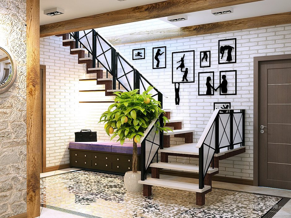 Дизайн прихожей с лестницей