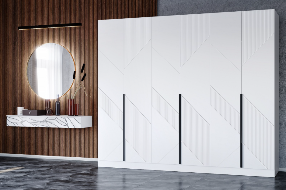 Внутри шкафа "Палермо" можно организовать пространство по своему усмотрению. Разнообразные полки, ящики и вешалки обеспечат удобное размещение вашей одежды, обуви и аксессуаров. Благодаря удобной системе хранения, все вещи будут аккуратно расположены и всегда под рукой.