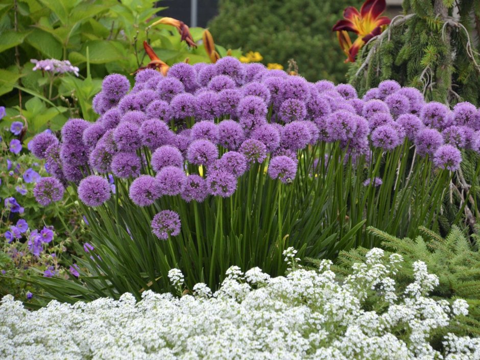Декоративный лук аллиум в ландшафте