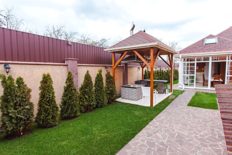 Дизайн двора частного дома — это не только красота, но и практичность. Различные функциональные зоны, такие как барбекю, детская площадка или зона для отдыха, помогут эффективно использовать пространство и удовлетворить потребности всей семьи.