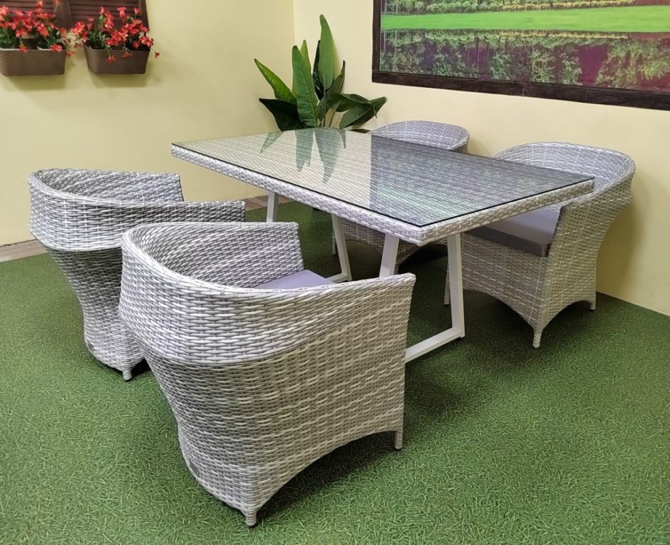 Набор мебели искусственный ротанг 4+1 (стол 75*74см+4стула) Latte