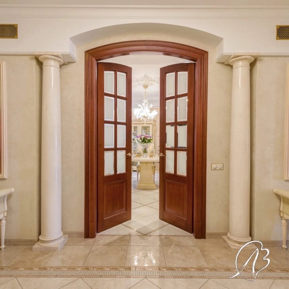 Распашные двери межкомнатные двустворчатые с фрамугой