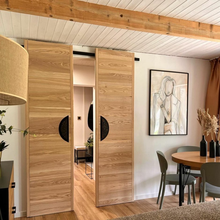 Кроме выбора материала, вы также можете экспериментировать с формой и цветом дверей. Овальные или асимметричные формы придают помещению оригинальность и игривость, в то время как яркие цвета могут стать акцентом интерьера.