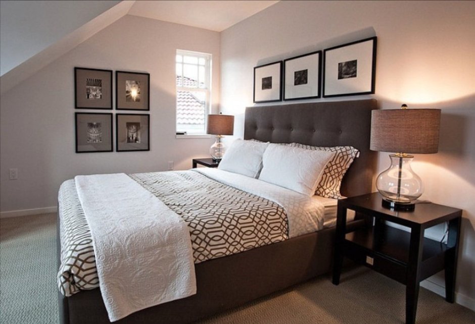 Светлая спальня с темной мебелью
