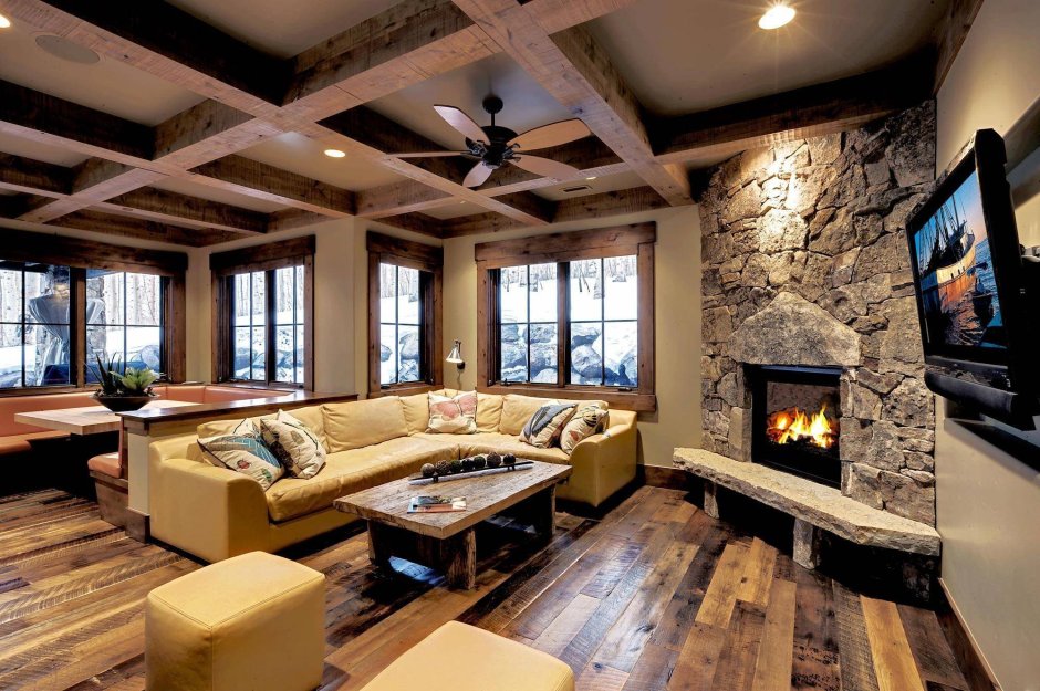 Первое, что бросается в глаза, это потрясающая конструкция потолка из массивного дерева. Его текстура и оттенок создают чувство стабильности и природной элегантности, которые передаются на всю комнату. Деревянные балки, тщательно обработанные и выверенные, добавляют характера и придают особый шарм интерьеру.