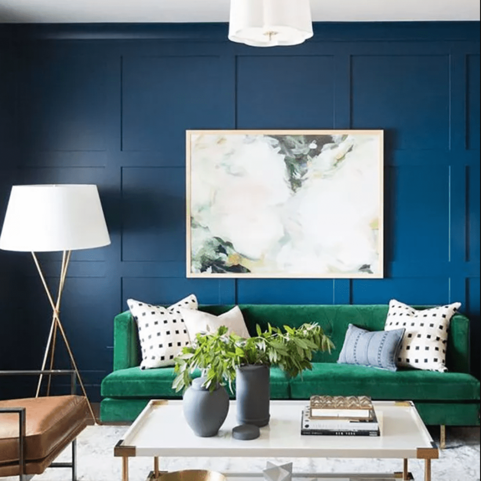 Синий цвет символизирует небо и океан, что придает помещению ощущение простора и свободы. Он также ассоциируется с покойным состоянием ума и умиротворением. В гостиной он может использоваться как основной цвет стен или мебели, создавая глубину и уют. Синий также хорошо сочетается с деревянными элементами и натуральными материалами, придавая интерьеру естественность и непринужденность.