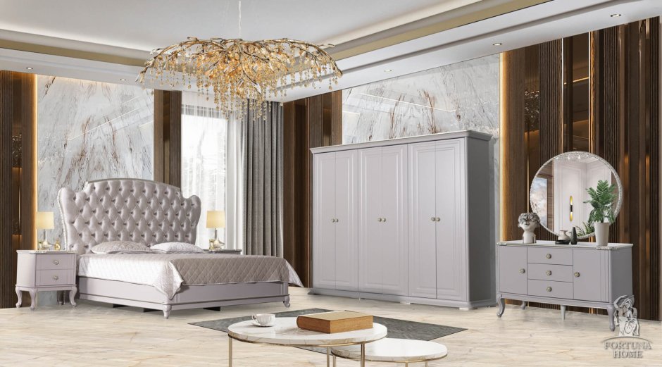 Завершение образа спальни Мия — это использование акцентных элементов декора. Нежные подушки с кружевными вставками, шелковые покрывала и стильные картинки на стенах придают интерьеру особую изысканность и индивидуальность.