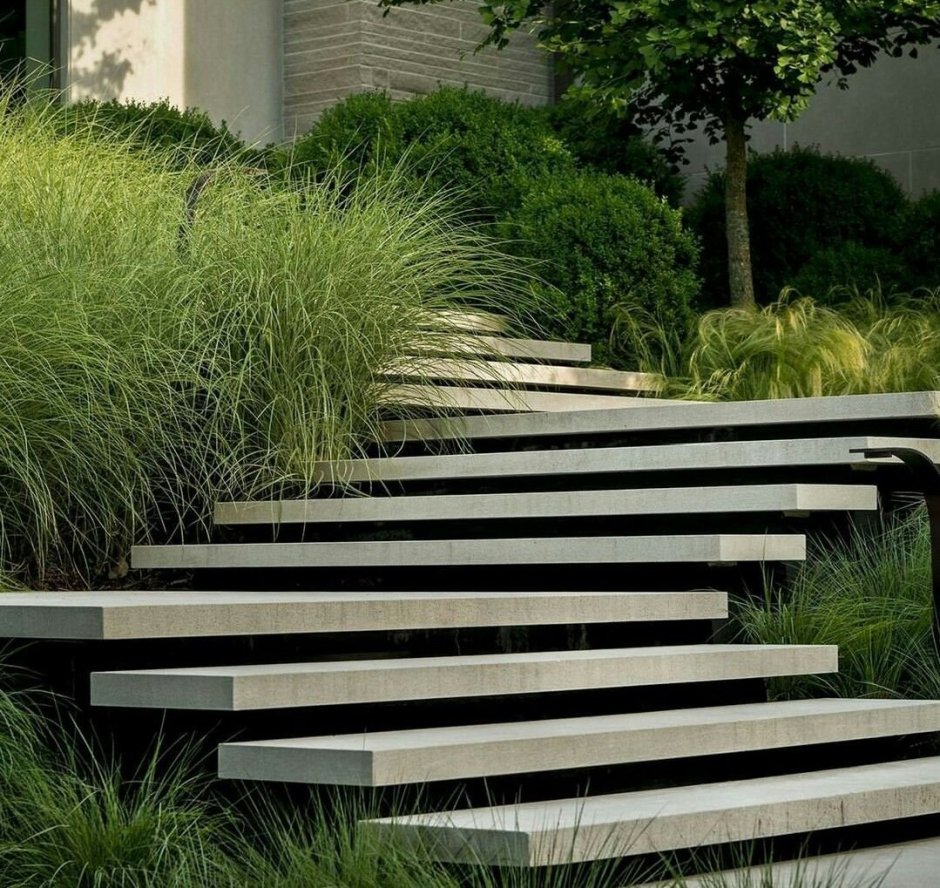 Бетонные ступени в ландшафте