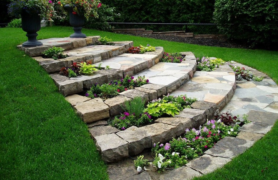 Каменные ступеньки в саду