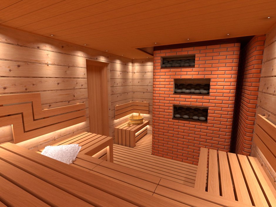 Отделка кирпичной бани внутри