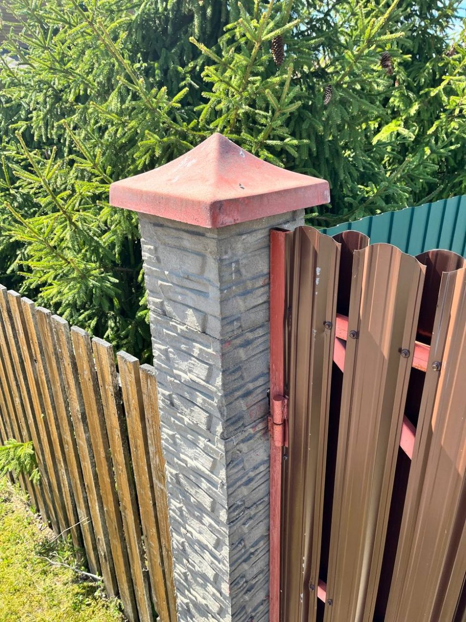 Столбы для забора снизу металл верх дерева